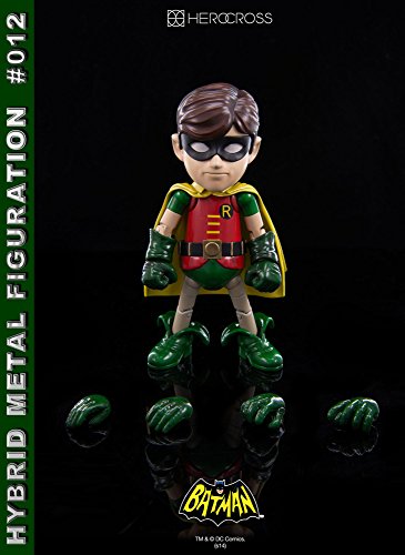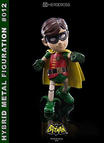『【ハイブリッド・メタル・フィギュレーション】#012 『バットマン 1966年TVシリーズ』ロビン』はヒーロークロスが製作したバットマンシリーズのフィギュア。本体サイズは高さ約14cm。バットマンシリーズやヒーロークロスに関連したフィギュアや関連商品も掲載。