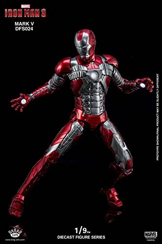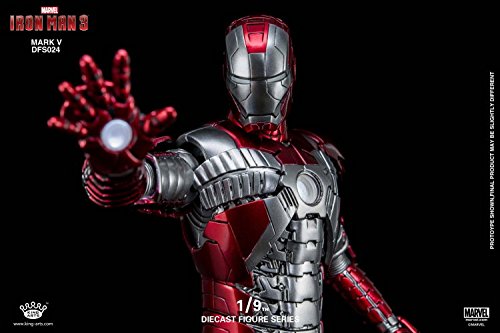 『1/9 ダイキャスト フィギュア シリーズ アイアンマン3 アイアンマン Mark5』はキングアーツが製作したアイアンマンシリーズのフィギュア。本体サイズは高さ約24cm。1/9スケールスケール。アイアンマンシリーズやキングアーツに関連したフィギュアや関連商品も掲載。
